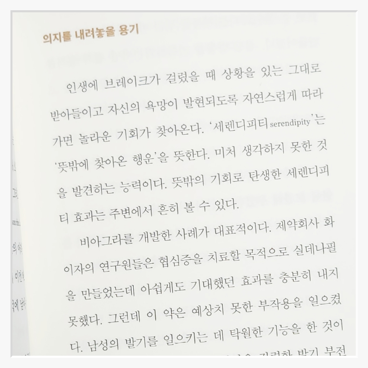 책은 철학자들의 깊은 사유와 구체적인 사례를 통해 그 가능성을 설득한다에픽테토스는 "지혜는 현실을 거부하지 않는 데서 나온다"고 했고프로이트는 실패가 우리가 무의식 속 욕망을 발견하는 계기라고 말했다저자는 다윈페더러스티브 잡스 등 현대의 성공 사례를 예로 들어그들 모두 실패를 발판 삼아 지금의 자리에 올랐다고 설명한다.