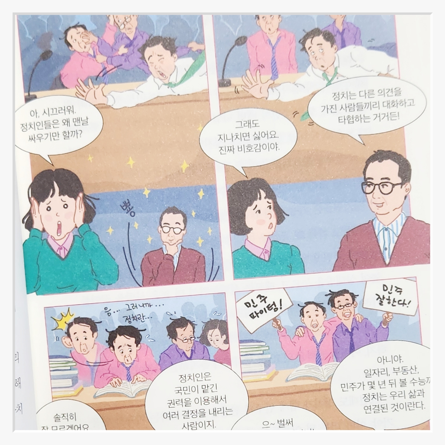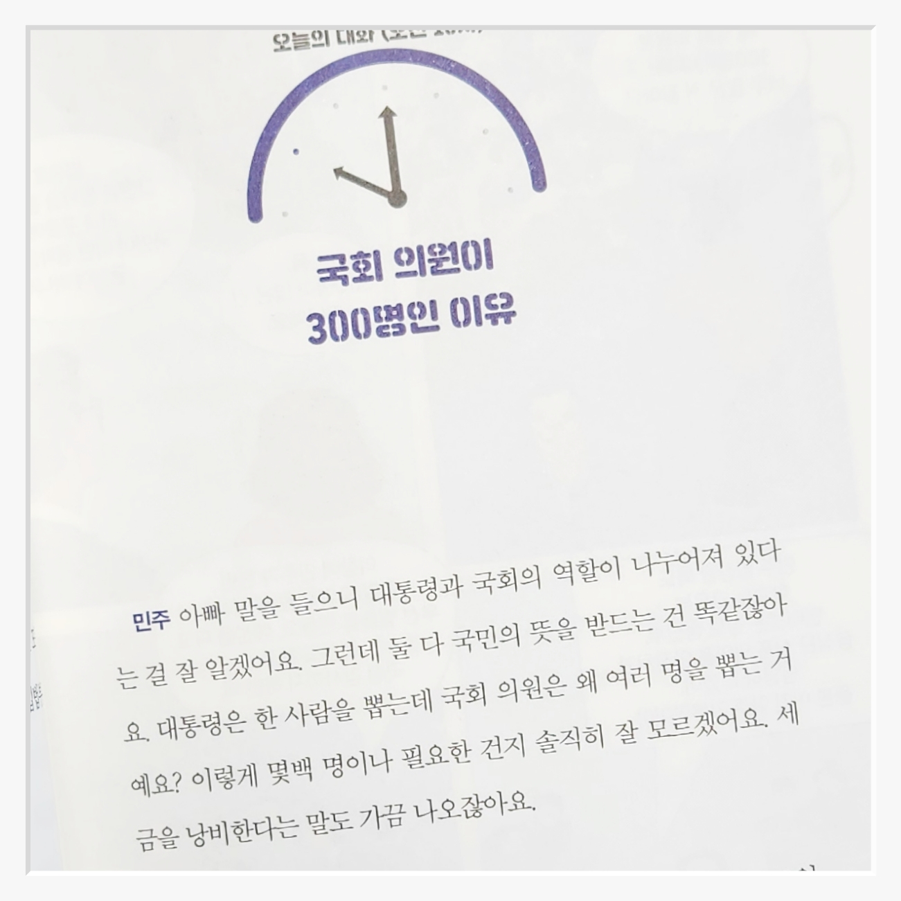 책의 특별함은 단순히 지식을 전달하는 데 그치지 않는다는 점이다각 장 말미에 나오는 교과서 밖 생각’ 코너는 독자가 스스로 고민하고질문에 답하며 더 나은 내일을 꿈꾸게 한다이런 구성은 책을 읽는 독자의 참여를 이끌어내고자연스럽게 민주 시민으로서의 역할을 고민하게 만든다.