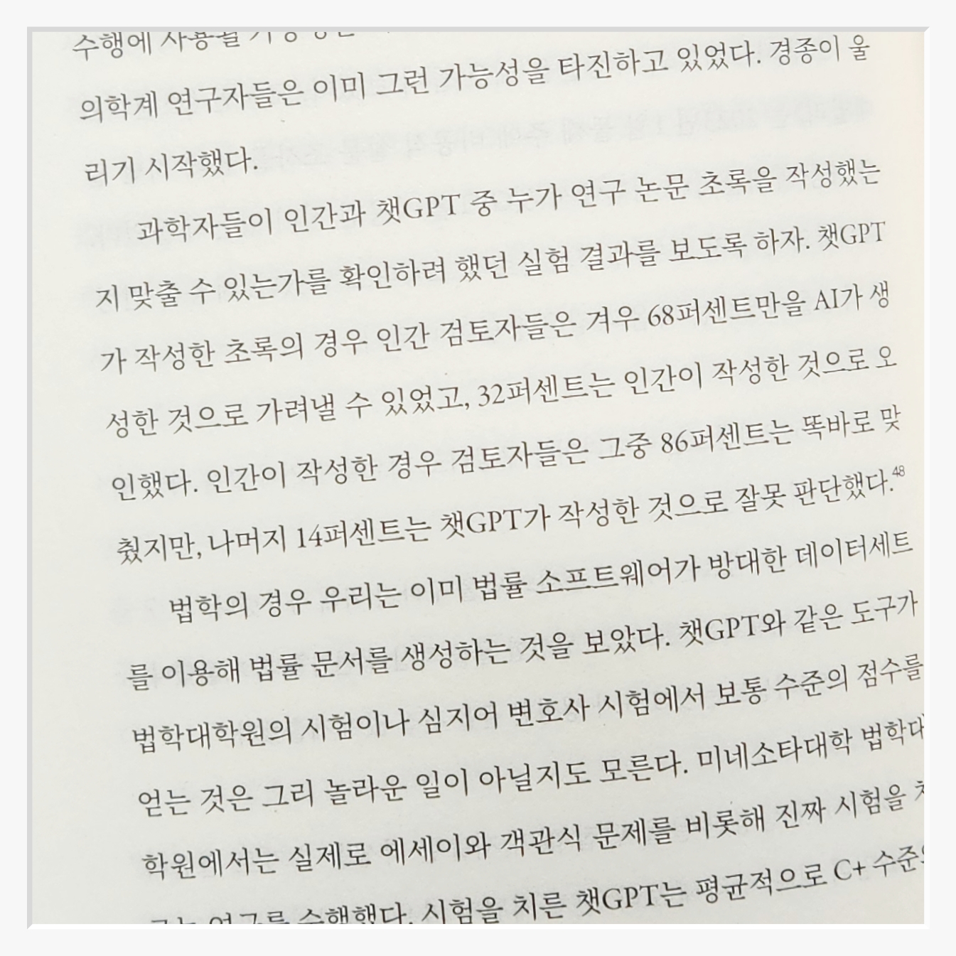 책의 중반부에 등장하는 질문이 특히 흥미로웠다. "AI는 인간의 글쓰기 중 어떤 부분을 대체할 수 있을까?" 단순히 정보를 전달하는 텍스트는 AI가 훌륭히 대체할 것이다하지만 감정경험그리고 시대의 흔적이 묻어나는 글은 여전히 인간만이 쓸 수 있는 영역으로 남는다책은 한강 작가의 작품을 예로 들며인간의 삶과 이야기가 얼마나 중요한지를 강조한다.