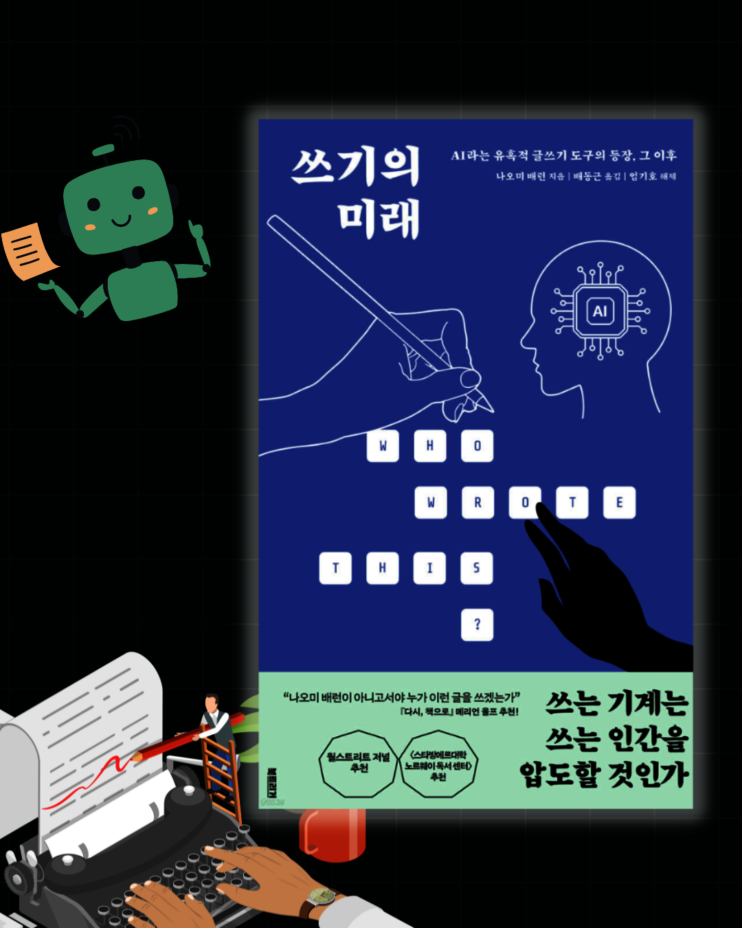 #쓰기의미래 #나오미배런 #메리언울프 #AI #GPT #문해력 #미디어리터러시 #디지털문해력 #chatgpt #쓰기전략 #글쓰기도구 #쓰는인간 #글쓰기 #인공지능 #AI시대 #저자주권 #인문교양 #트렌드 #북스타그램