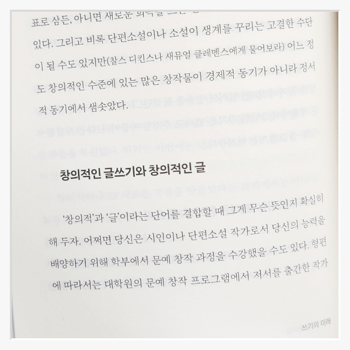 요즘 내가 자주 떠올리는 질문이다GPT 같은 AI가 글도 쓰고번역도 하고심지어 소설까지 창작한다는 소식을 접할 때마다 두 가지 감정이 교차한다경이로움과 불안함그렇다면 인간으로서 나는 어떤 글을 써야 하고또 어떤 글은 AI에 맡겨도 될까쓰기의 미래는 이러한 물음에 대해 깊이 있는 고민과 통찰을 제시한다.