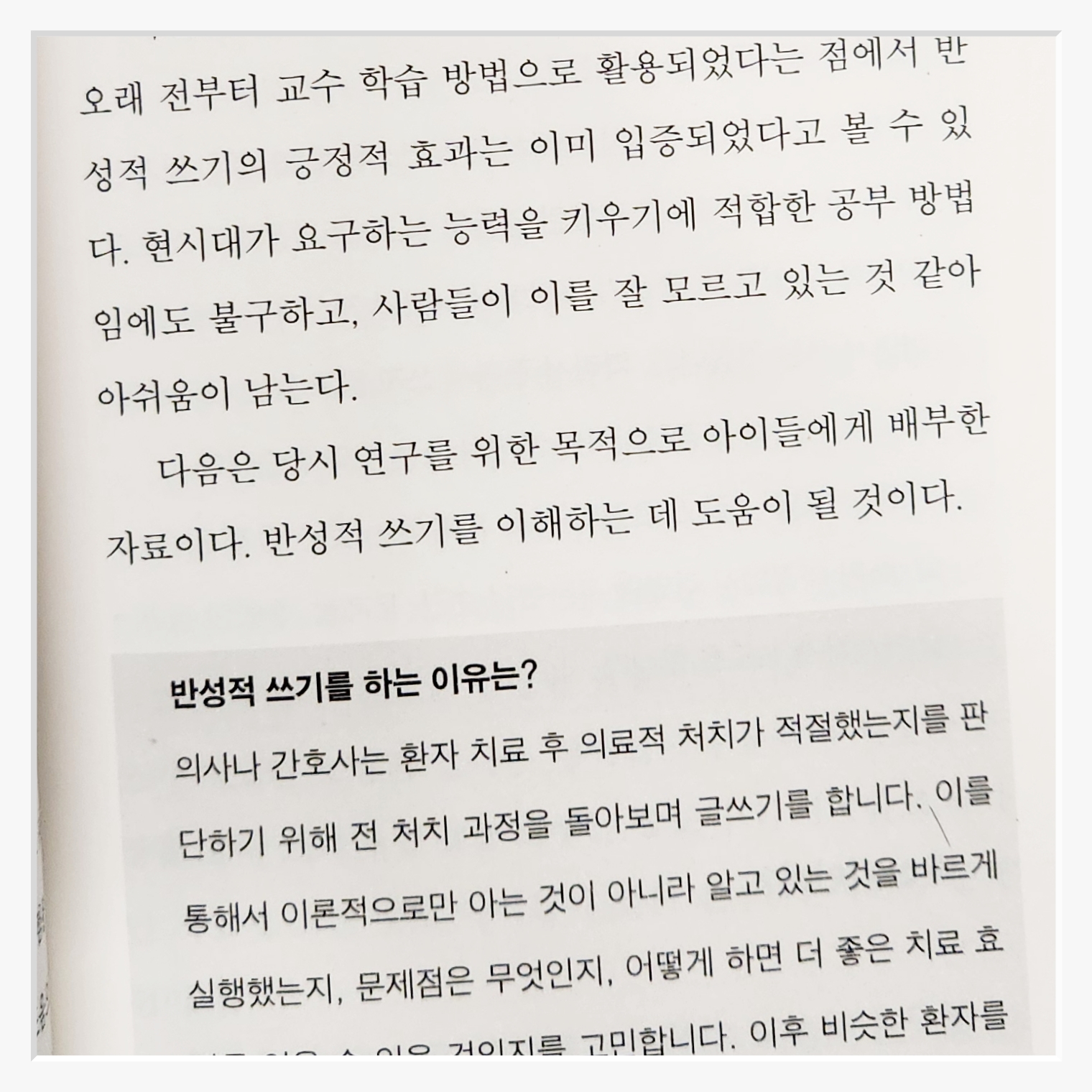 반성적 쓰기는 단순히 일기처럼 하루를 기록하는 것이 아니다. 공부에서 자신의 태도와 행동을 돌아보고, 잘한 점과 부족했던 부분을 명확히 적는 것이다. 특히 메타인지를 활용해 자신이 무엇을 알고 무엇을 모르는지 파악하게 한다. 이는 아이들이 스스로 문제를 해결하는 힘을 길러주며, 자기주도 학습으로 이어질 수 있도록 돕는다. 책에서는 단계별 쓰기 노트 활용법을 통해 초보자도 쉽게 시작할 수 있게 구성했다.