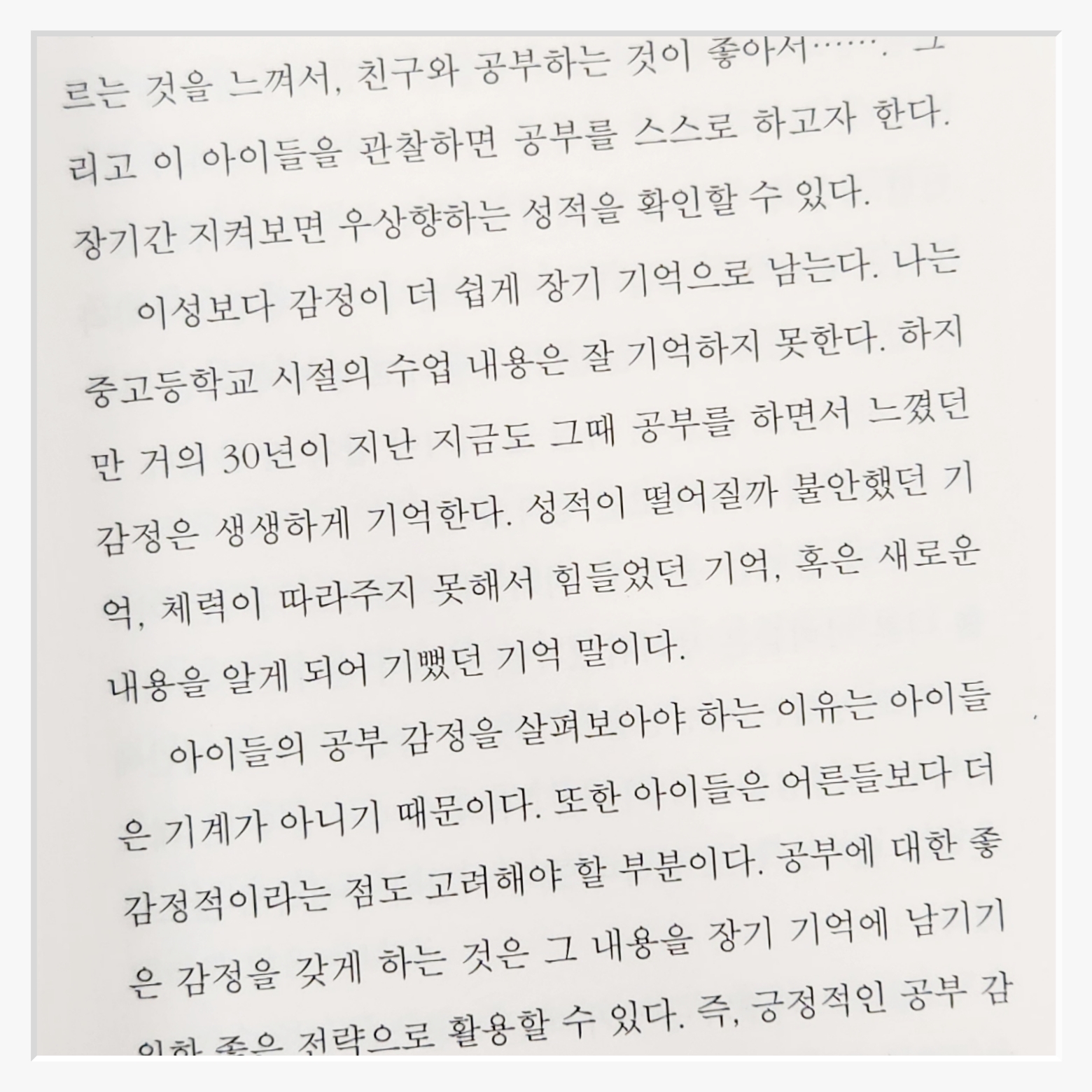 결국, 공부는 아이 혼자만의 싸움이 아니다. 부모와 교사가 아이의 감정을 이해하고, 실패를 인정하며, 꾸준히 응원할 때 진정한 성장이 가능하다. 『쓰기 공부법』은 아이뿐 아니라 부모와 교사에게도 중요한 메시지를 던진다. 공부는 결과가 아니라 과정이며, 그 과정을 잘 이끌어가는 것이 공부의 진정한 목적이라는 점이다.