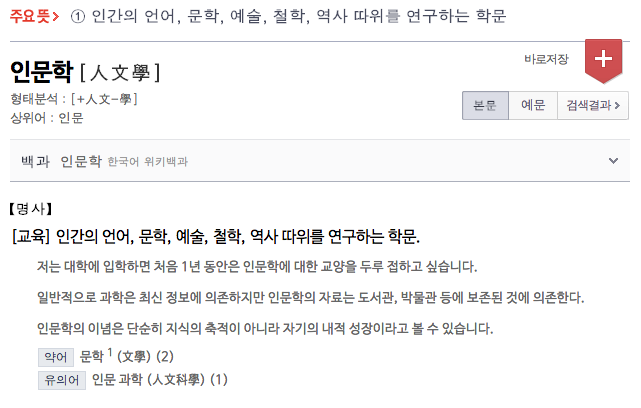 사전적 정의를 보면 인간과 관련된 모든것에 대한 연구가 중심이 되는 학문정도 되겠다.