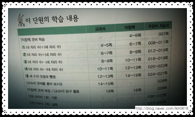 차례만 보고 아이가 수학책과 수학익힘책의 내용을 연계할 줄 할 줄 알고