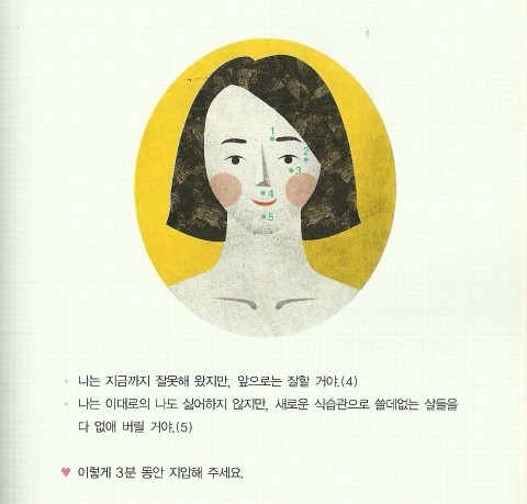 책 사이사이에 나오는 지압그림은 지압을 하면서 내 자신에게 주문을 거는 방법을 알려준다.