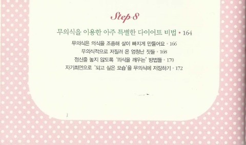반복되는 다이어트로 지쳐있는 심신을 안정시키고, 다이어트에 대한 올바른 마음가짐에 대한 내용이다.