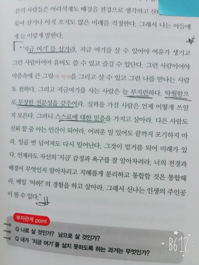 이 부분이 마음에 들어서 몇번이고 반복해서 읽었어요. 저한테도 스스로 응원해주는 말이라고 여겨졌어요^^