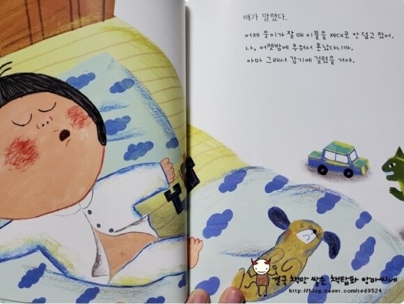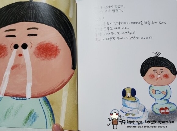 감기가 걸린 아이. 실제 우리 아이도 약간의 감기기운이 있어서 이 책을 읽어주는데 옆에서 누나가