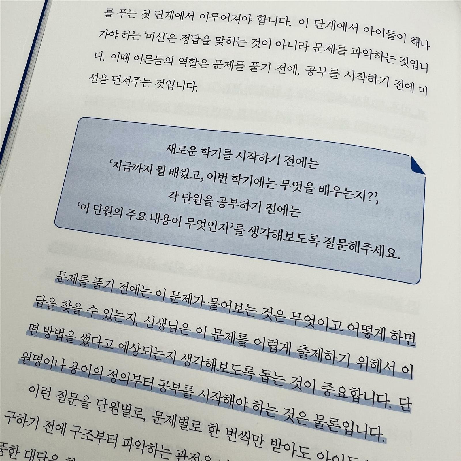 특히 아이들에게 공부를 더 많이 시키는 방법이 아니라, 스스로 공부할 수 있는 힘을 길러주는 방향을 제시한다는 점이 의미 있게 다가왔습니다. 사례 중심의 구성은 실제 상담 현장이나 학습 지도 과정에서도 적용해 볼 만한 힌트를 주었고, 부모와 교사 모두에게 실질적인 통찰을 전해준다는 생각이 들었습니다. 점수를 올리는 기술을 넘어 오래 지속되는 학습 역량을 고민하게 만든 점에서, 이 책은 단순한 교육서를 넘어 공부의 방향을 점검하게 해주는 의미 있는 책으로 느껴졌습니다.