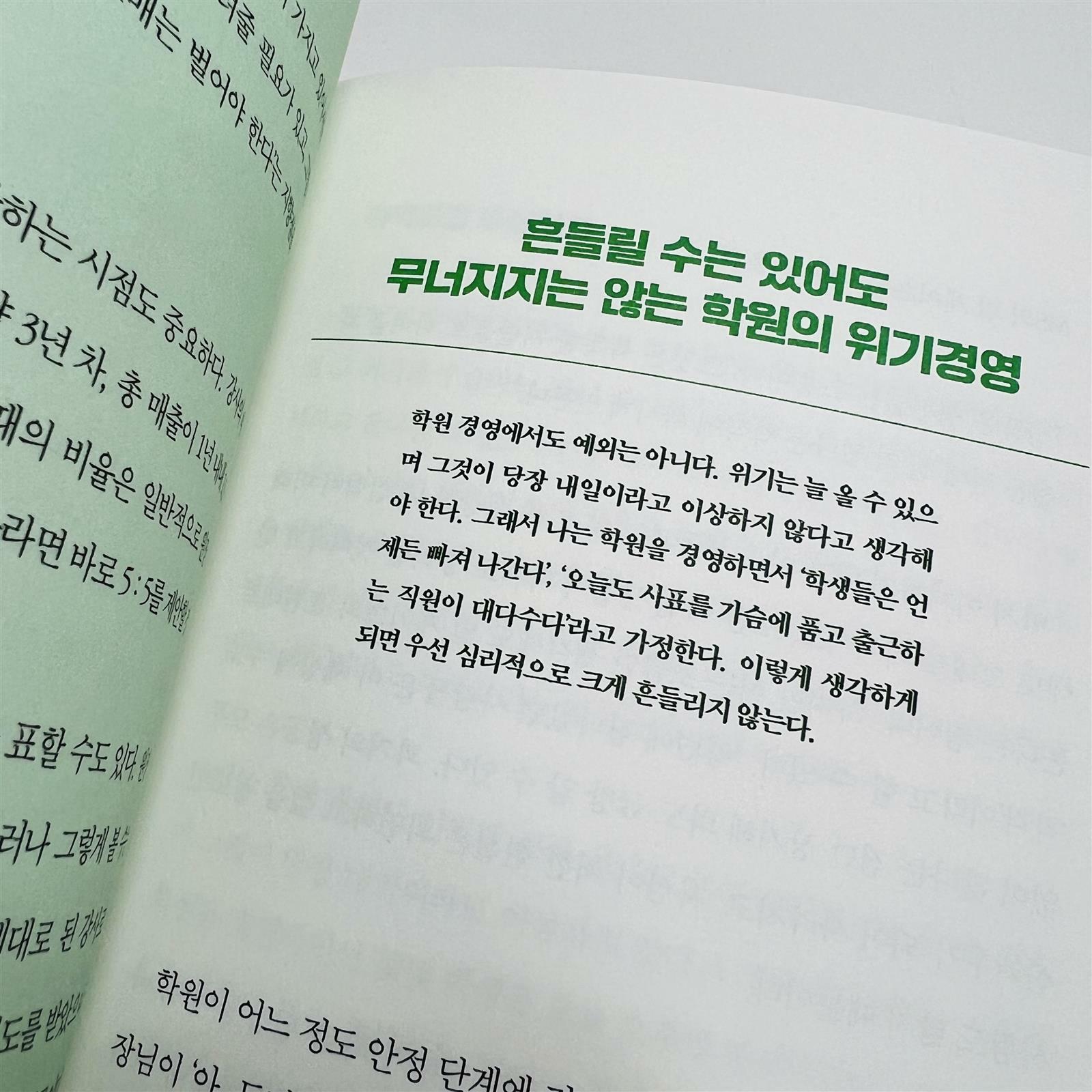그런 시기에 <노빠꾸 학원 경영학 개론>을 접했는데, 단순히 방법을 알려주는 책이라기보다 내가 놓치고 있던 부분을 짚어주는 느낌이 있었습니다. 어려운 환경만 탓할 게 아니라 내가 익숙하게 반복해 온 방식에도 문제가 있을 수 있다는 대목이 특히 와닿았습니다. 뭔가를 더 배우거나 추가하기보다 지금 하고 있는 방식부터 정리해 볼 필요가 있다는 말도 현실적으로 느껴졌습니다. 읽다 보니 막연하게 답답했던 부분들이 조금씩 정리되는 기분이 들었습니다.