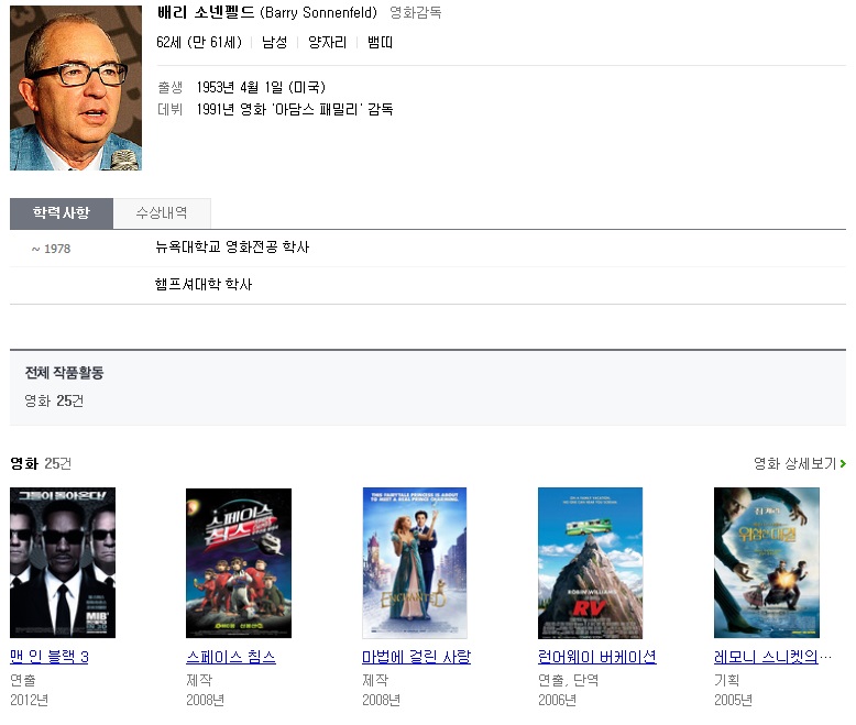 현재 맨인블랙 3, 마법에 걸린 사랑, 아담스 패밀리를 제작 및 연출한 배리 소넨필드에 의해