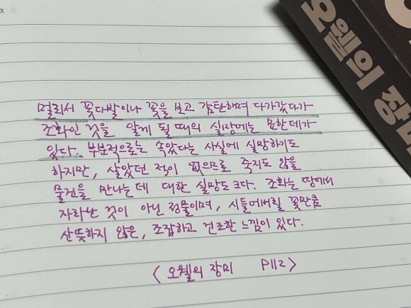 누구나 추모하는 방법, 그리운 이를 떠나보내는 방법이 다르다. 돌아가신 후에 나의 일상을 찾아가는 일은 부조리함이라고 한다. 뫼르소의 행동이 이해가 되는 나는 잘못된 것일까.