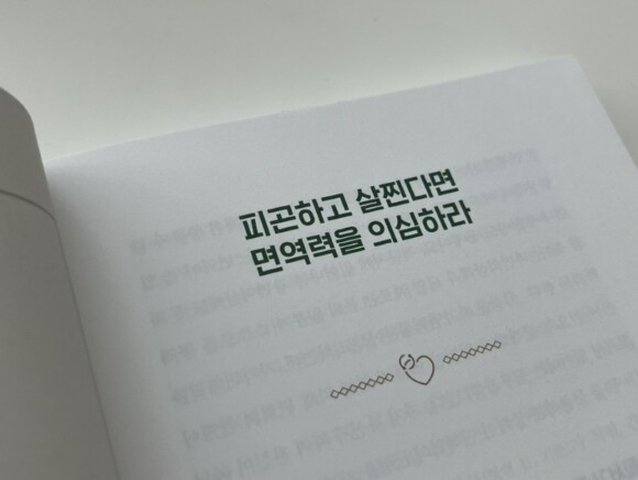 면역력을 모른 상태에서 그때의 나는 마스크를 열심히 쓰고 영양제, 비타민을 잘 챙겨먹었는데 왜 바이러스에 걸렸는지 억울하다 생각이 들었다. 하지만 책을 다 읽고보니 몸의 독소를 제거해주는 디톡스 역할의 과일을 잘 챙겨먹지 않았고 식단, 수면습관, 긍정적 마인드 같은 몸의 균형을 잡아주는 주요한 노력은 전혀 하지 않았다. 아프면 병원에가서 약을 처방받아 먹는 것에 의존하고 가족력이 있으니 관련 비타민을 챙겨먹어 아프지 않도록 한다는 운명적인 건강관을 갖고 살았던 것 같다. 이제 면역원리를 알았으니 약을 먹고 부작용으로 또 약을 먹는 일은 없게 <완전 면역>이 되도록 습관을 바꿔 건강한 삶을 살아야겠다.