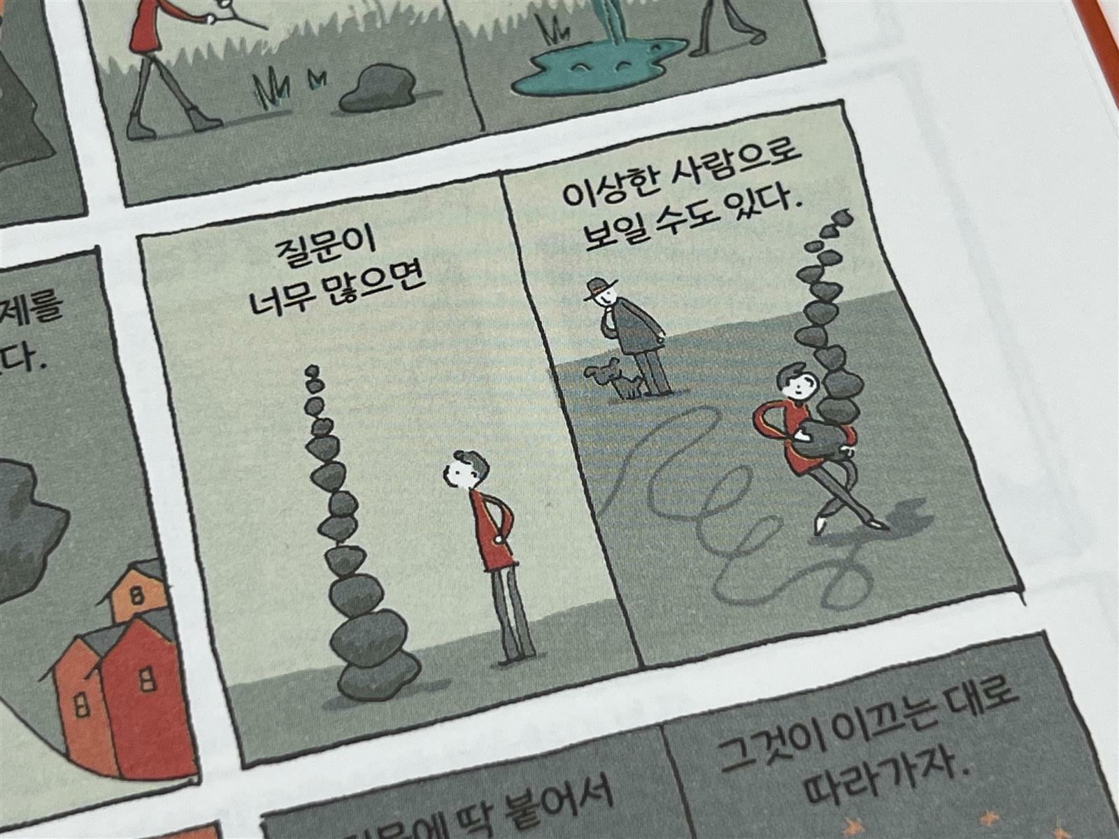 치과의사라는 직업에서 경쟁같은 생각을 하는 것보다 오히려 만화를 그리는 것을 스트레스로 생각한 것 같이 느꼈어요. 영감, 노력, 즉흥성, 열망, 사색, 탐구, 일상의 좌절, 모방, 절망, 순수한 기쁨 책에서 나오는 챕터들이 만화 에세이를 그리기 위해 필요한 것들이기도 하고 아이디어와 창의를 요하는 것이기도 하니까요☺️