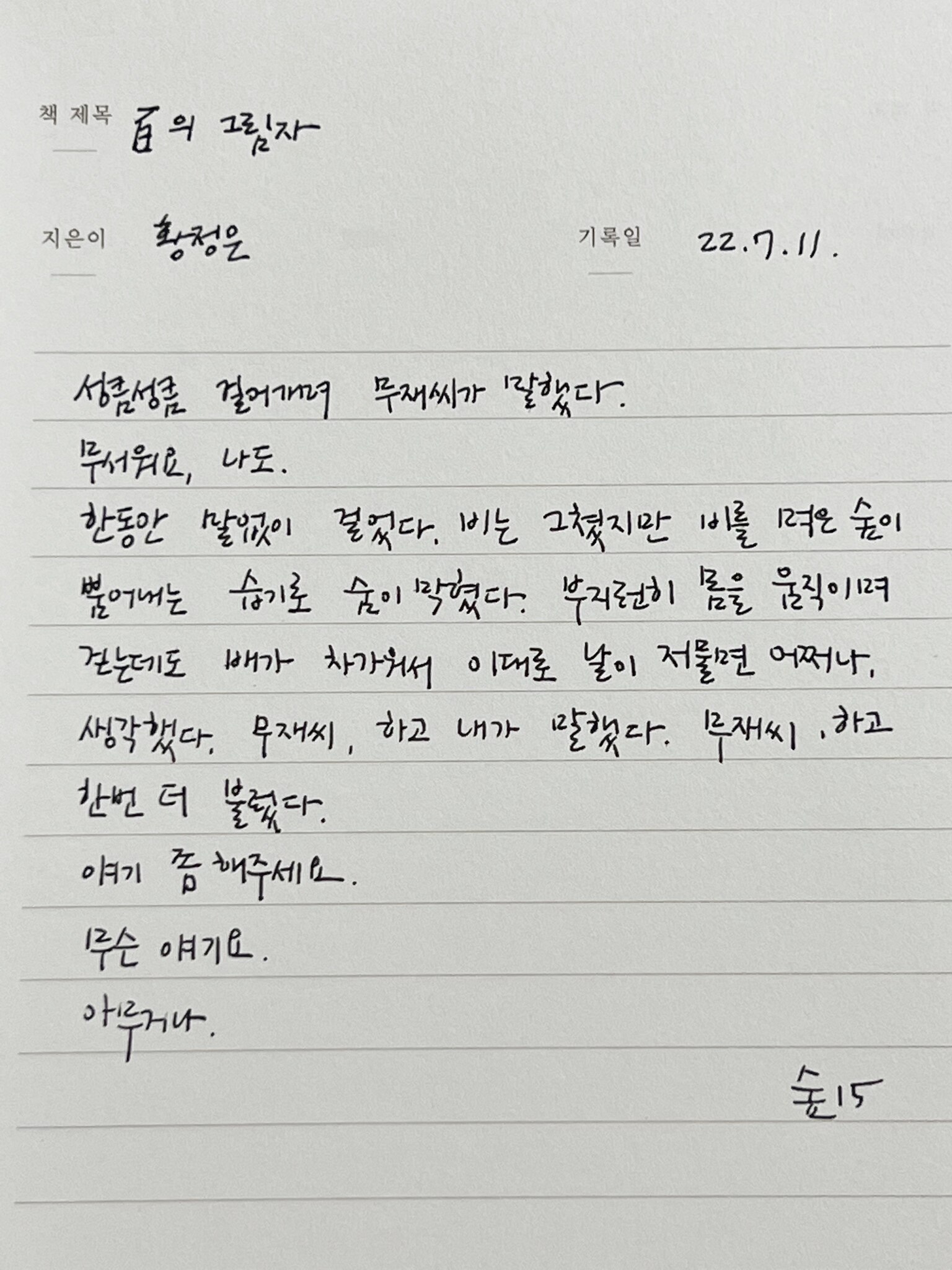 자기 자신을 향한 구심력을 느끼는 대신 자꾸 외부로 향한 원심력을 느끼게 되는 이유는 결국 자기 자신을 그런 고통으로부터 보호하기 위함입니다. P57