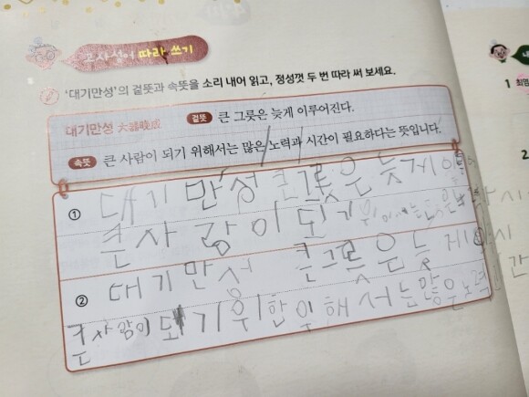 고사성어의 뜻을 천천히 직접 필사해모면서 생각이 차분하게 정리되고 집중력 키워보아요, 두 번 필사더라고요!