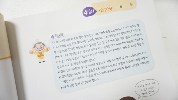 본문에서 찾아보라는 문제 구성이 너무 맘에 들었어요. 아이랑 독해 하다보면 문제가 요구하는 정확한 답변을 본문에서 찾아야하는데 이 훈련이 고사성어도 배우면서 문해력도 길러주는 것 같아 좋아요.