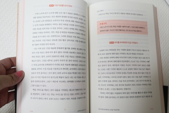 사실 지금 아이를 가르치고 있는 입장에서 어떻게 하면 아이들이 수업을 적극적으로 참여하면서 아웃풋을 이끌어 낼 수 있을까 고민이 정말 많다. 책 중간에는 '교사에게' 라는 코너가 있어서 아이들에게 가르치는 입장에서는 공부머리를 어떻게 자극하면 되는지 나와 있어서 좋았다.