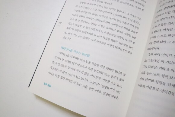 이 책의 반정도는 아이의 공부자존감,공부 의욕(마음)에 대해서 다뤄져 있다면 뒷부분에는 집중력,문해력,메타인지 등 공부방법에 대해 설명되어있다.