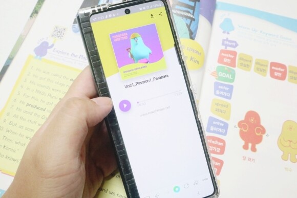 한 문장을 한단어씩 쪼개서 어순을 익혀 공부하는데, 하단에는 한글로 해석도 나와있어요.
