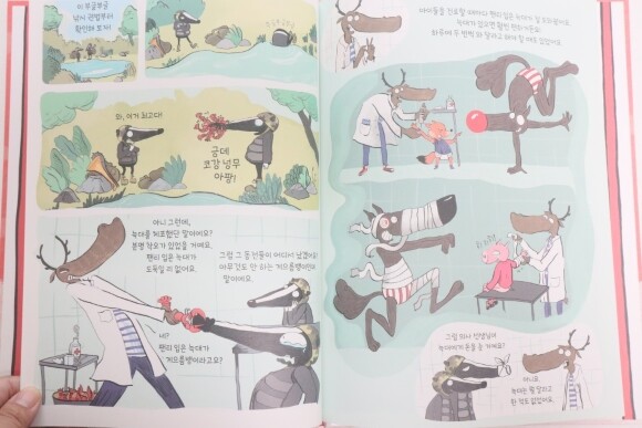 늑대를 잡은 오소리들은 길을 가다가 팬티입은 늑대는 절대 게으름뱅이가 아니라면서 늑대와의 에피소드를 알려줘요. 그렇게 또 길을 가다가 이번엔 ' 의사 순록'이 , 학교선생님들, 부엉이여사님 등 늑대에게 고마움이 얽힌 사연을 알려주더라고요.