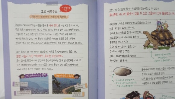 앞서 책에서 본 동물들에 대해서 짧게 짧게 관찰읽기들이 나와있거든요. 날개귀상어, 코코넛문어와 소라게, 자바 코뿔소, 호모 에렉투스 !