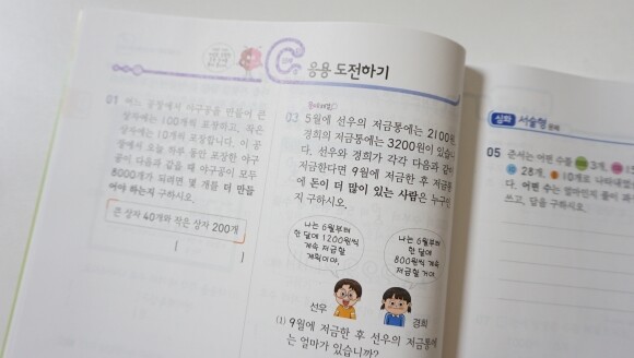 b단계의 문제는 주로 교과서 , 익힘책, 학교 시험 기출문제를 유형별로 이루어져 있는데요.