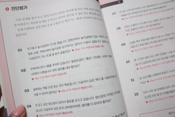 본격적으로 문제를 풀기 전에 '진단평가'가 있더라고요. 자신의 실력을 점검해보며 어떤 문제 유형이 가장 어려운지 서술형 문제를 수식으로 바꾸어 생각할 수 있는지도 확인해보아요.