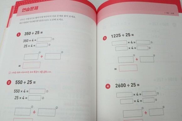 다음 장에는 문제를 보고 암산하여 답을 작성해보는데요. 빨간색으로 힌트도 나와있으니까 배운 내용을 익혀서 암산의 달인이 되어봐요!
