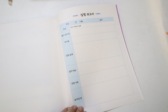 ▲ 부록으로는 논술 기록지,안전일지, 스트레칭 실천표 ,조사보고서, 실험보고서 등 있어요.
