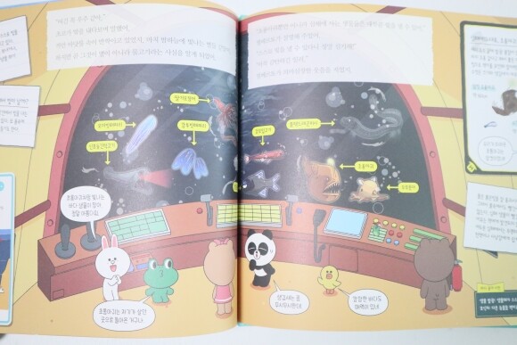 교과서를 기반으로 구성된 과학 주제들과 내용들로 이루어져 있는데, 보통 이부분은 아이들에게는 지루하게 느껴지거나 혹은 잘 읽지 않을까 걱정하실텐데요. 오히려 라인프렌즈의 캐릭터들의 성격을 다뤄서 재미있게 편집 해놓았더라고요.
