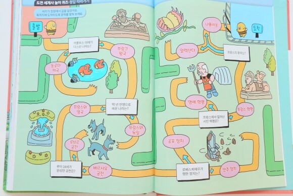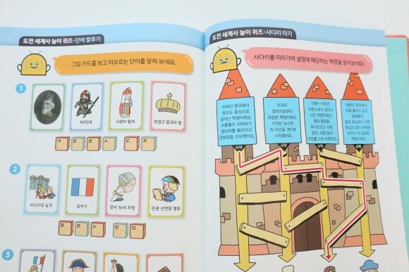 ▲설명도 그렇게 길지도 않고 그림도 많이 있어서 초등 친구들이 읽는데 부담도 없어요. 그리고 하단에는 역사 퀴즈 객관식도 있는데 너무 쉬워요 !! 너무 쉬워서 세계사에 대한 자신감이 쭉쭉 상승하겠더라고요
