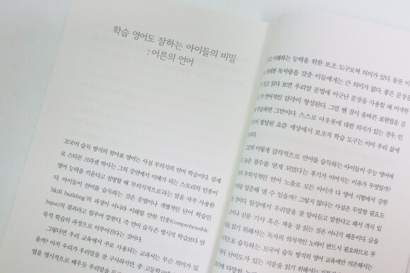 저자는 비상교육, 클래스 유 등에서 엄마표 영어 강의를 진행하고 있어서, 글 중간 중간에는 엄마표영어를 하는 분들에게 조언과 뼈 때리는 이야기들이 중간 중간 나와 있다.