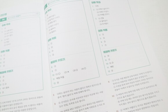 문제는 표현력 > 어휘력 > 독해력으로 풀어보면서 다져요 짧은 독해력인지라 초등 저학년친구들 이라면 무난하게 풀거예요.