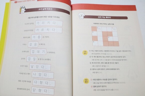 ▲ 일주일 동안 배운 단어를 직접 따라써보면서 정리 해보고요. 그 옆에는 미로찾기나 초성퀴즈 가로세로 낱말퍼즐로 배운내용 복습을 쓰기와 놀이형식으로 재밌게 공부할 수 있더라고요.