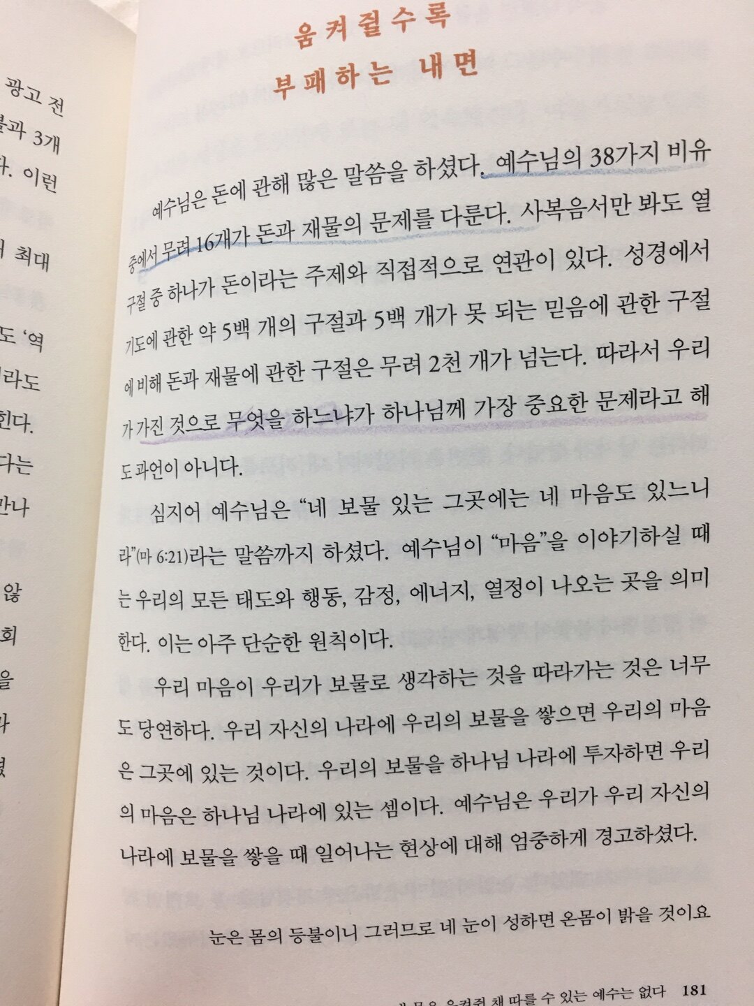 저자의 이야기는 언제나 큐티를 바탕으로 한 진솔한 고백과 간증이 담겨 있다. 그리고 가정회복을 향한 눈물과 기도가 강단에서 전하는 설교가 언제나 진실되다. 이 번 책 또한 제목에서도 느낄 수 있는 것처럼 ‘ 100프로 응답받는 기도” 확신에 찬 어조로 성경을 바탕으로 하여 ‘기복’을 넘어선 ‘팔복’ 의 기도를 배우라고 권면하고 있다. 프롤로그에서 ‘팔복’이라 하여 신약성경 마태복음의 산상수훈을 바탕으로 내용을 서술했을까 생각했는데 책을 다 읽고 나니 8가지 키워드 <‘주 기도문’,’감사와 찬양’, ‘회개’, ‘서원’, ‘인내’, ‘중보’, ‘내려놓음’, ‘아멘’ >이 ‘팔복(八福)’ 이겠구나 생각이 들었다.그리고 각 섹션이 끝나는 때마다 <말씀으로 기도하기>, <내 마음 들여다보기>를 통해 삶을 점검하도록 권면하고 있었는데, 입으로 직접 읽으며 기도문을 읊조리게 되면 놀라운 믿음의 ‘나의 고백’이 될 것임을 확신하기에 읽는 독자들 모두에게 추천하고 싶다.