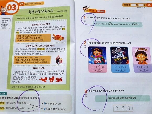 그런데 매번 다양한 지문이지만 교과연계가 되는 지문이 용선생 15분 독해에 실려 있어 참 다행이다 싶더라구요. 기사문, 설명문, 대화체 등 다양한 형식의 지문이 실려 있어 아이가 읽으면서 초등 국어 지문에 대해 시야를 넓혀가는 것 같아요.