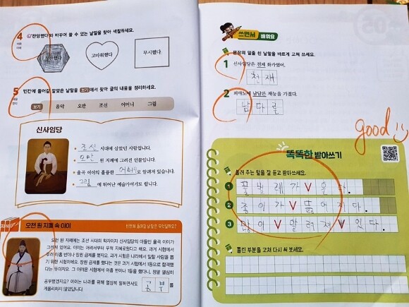 희 꼬마는 학교에서 일찍 오는 날 제일 먼저 하는 일이 용선생 15분 독해를 푸는 일이었어요. 자기가 제일 좋아하는 문제집이라 가장 먼저 푼다고 하더라구요. 그렇지 않으면 가끔가다 다음날 풀 것을 저녁때 미리 풀고 자기도 해요 ㅋㅋㅋㅋ