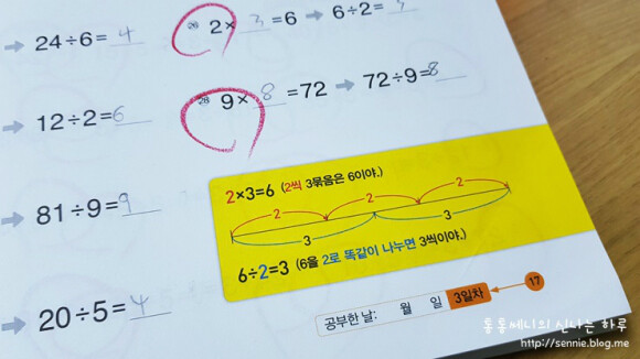 곱셈구구를 재미있게 배웠던터라 나눗셈도 그다지 어려워하지는 않는 편이예요.