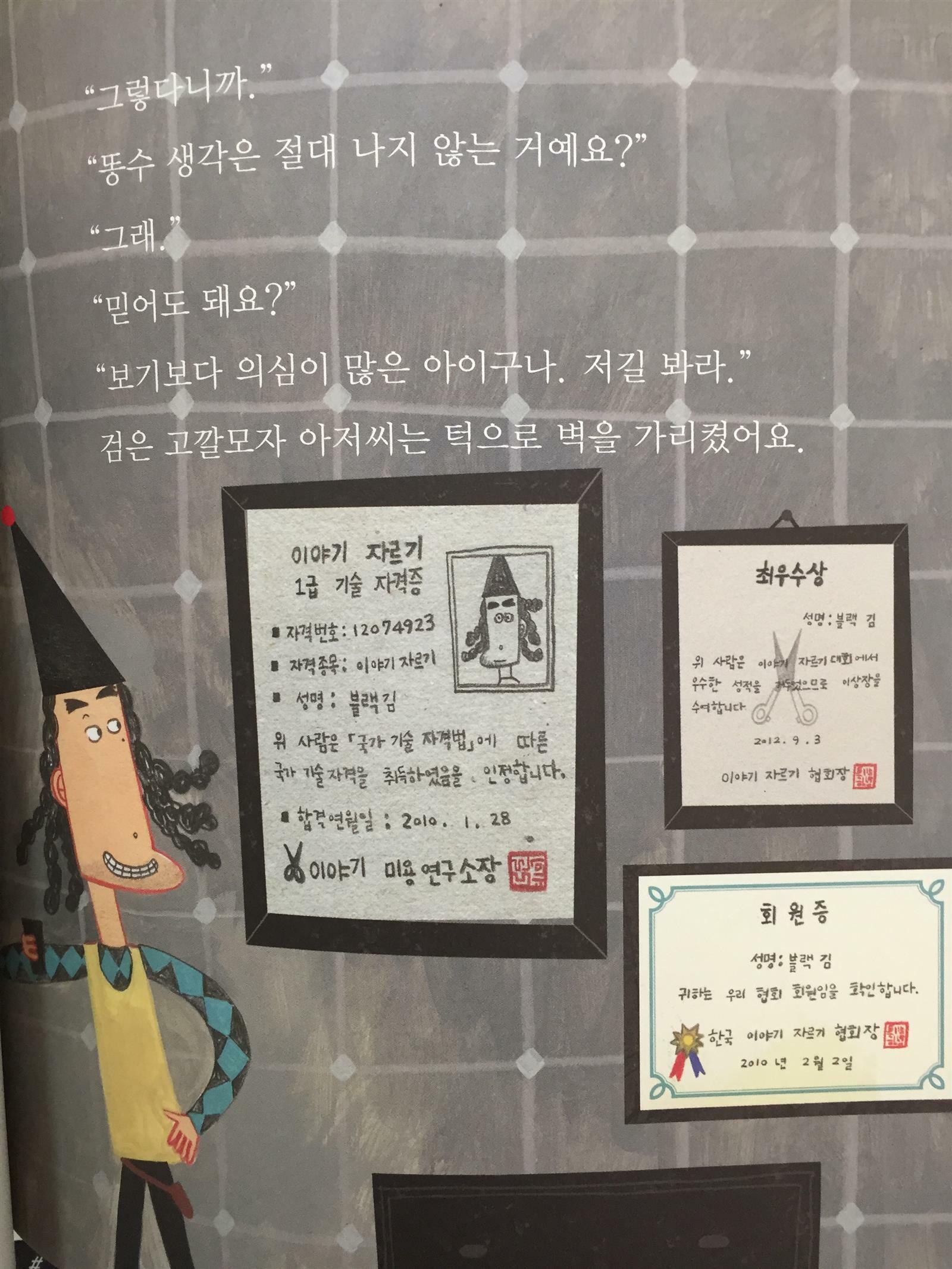이야기 자르기 1급 기술 자격증, 이야기 자르기 협회 회원, 이야기 자르기 대회 최우수상 등등.