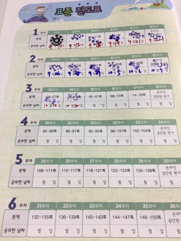 습관을 기르는데 안성맞춤, 강력 추천하는 진도표입니다.