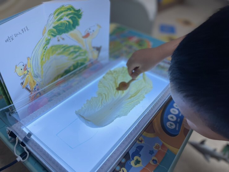 직접 알배추를 보고 배추쌈 책을 읽어 봐요