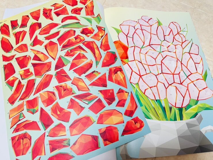 스티커 컬러링 북 : 플라워 - Flower Polygon Artwork 데코폴리