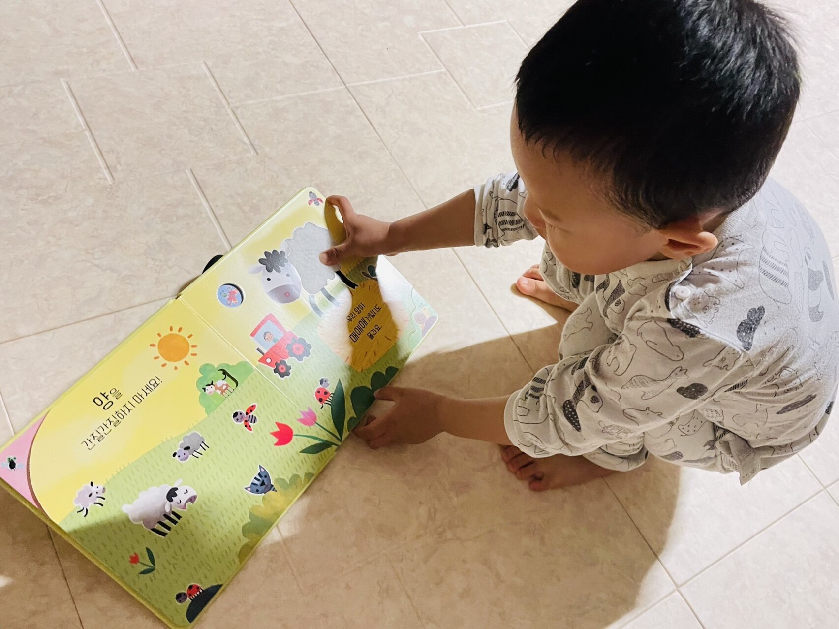 촉감놀이와 사운드 놀이를 함께 할 수 있는 즐거운 책이에요