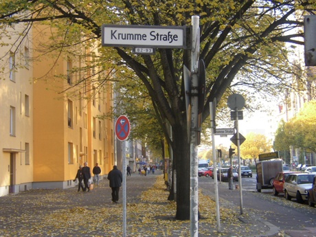독일어로 Krumm이라는 단어는 '휘어진, 굽은' 이라는 뜻을 갖는다. 벤야민이 살았던 지역 Charlottenburg의 구청 건물 Rathaus가 있는 대로와 그 반대쪽의 비스마르크 거리를 이어주는 약 600 미터 길이의 이 거리는 실제로 활처럼 휘어져 있다. 벤야민이 말한 대로 크루메 거리가 가장 크게 휘어지는 곳 저 멀리, 붉은 자기 벽돌로 지어진 수영장 건물이 보인다.