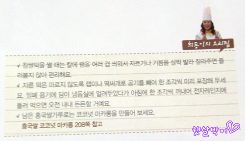 ☞ 본격 요리에 앞서 알아두어야 할 사항들 소개되어 있다. 이건 떡 만들기의 초초보 기본 상식들.