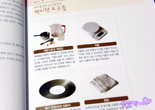 전문 계량 기구들과 함께 주변에서 쉽게 찾을 수 있는 숟가락을 이용한 계량법이 함께 소개되어 있어 좋았다.