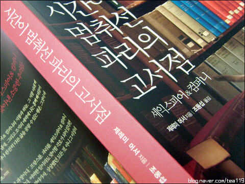 <시간이 멈춰선 파리의 고서점>은 인생이 위기에 몰렸던 한 청년이 파리의 고서점 '셰익스피어 & 컴퍼니'와 그 서점의 주인 '조지 휘트먼'을 만나면서 변화 되어가는 자신의 이야기를 담고 있는 에세이다. 그는 이책에서 낭만적으로 보이는 서점의 겉모습이 아닌, 서점 안의 진풍경들을 담아낸다. 서점 안에서 조지가 만들어낸 하나의 새로운 세계와 그곳을 지키고 있거나 거쳐간 다양한 사람들의 모습과 그들이 벌이는 일련의 사건들과 그것들을 겪으면서 조금씩 성장해가는 자신의 변화까지. 저자 제레미 머서는 솔직하고 담백한 문체로 이야기를 유쾌하게 풀어나간다. 암울한 상황의 자신의 모습을 묘사하면서도 위트를 잃지 않는다. 그래서 책을 덮을 때쯤엔 입가에 흐뭇한 미소 한 모금 머금는다.