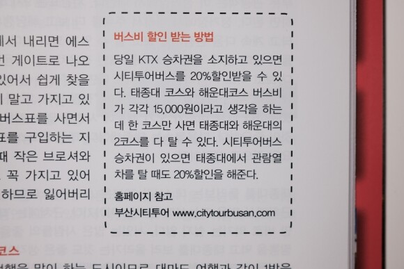 그리고 책 뒤편에는 아주 짧게 부산 당일 치기 여행 시티투어 버스 타고 둘러보기 코스도 담겨 있었다.